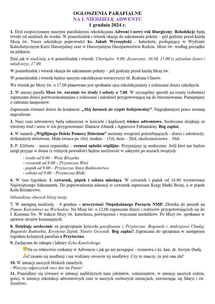I. NIEDZIELA ADWENTU – ogłoszenie i intencje mszalne 2-8 XII 2 grudnia, 2024 by trojcajeziorzany@gmail.com Leave a Comment