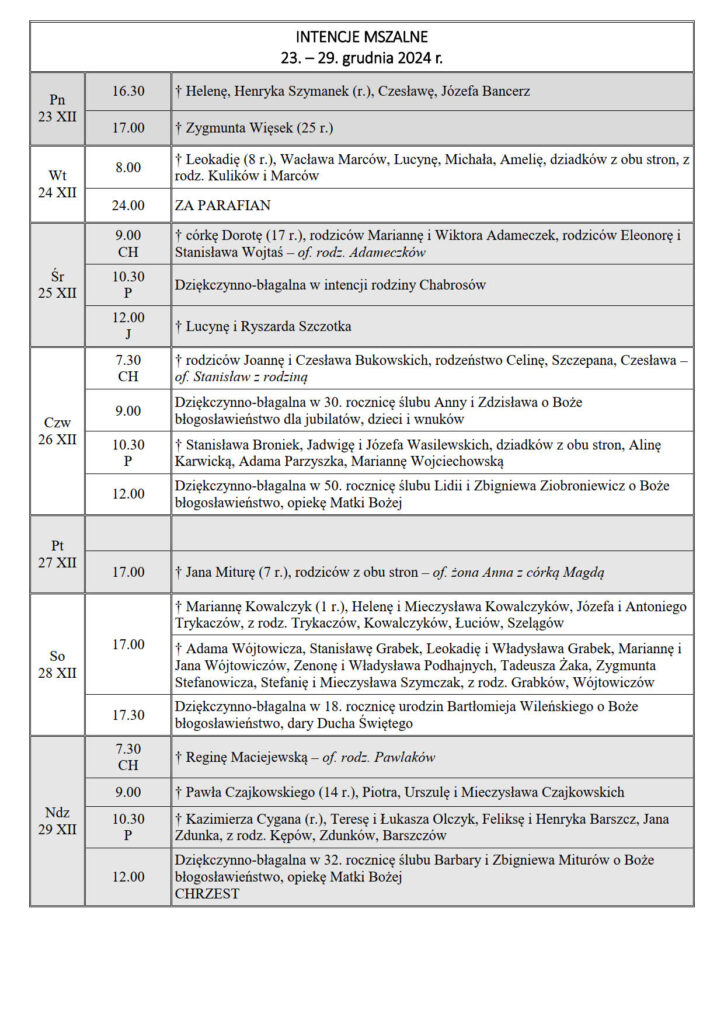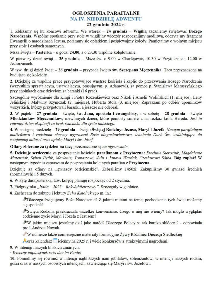 IV. NIEDZIELA ADWENTU – ogłoszenia i intencje 23-29 XII 22 grudnia, 2024 by trojcajeziorzany@gmail.com Leave a Comment